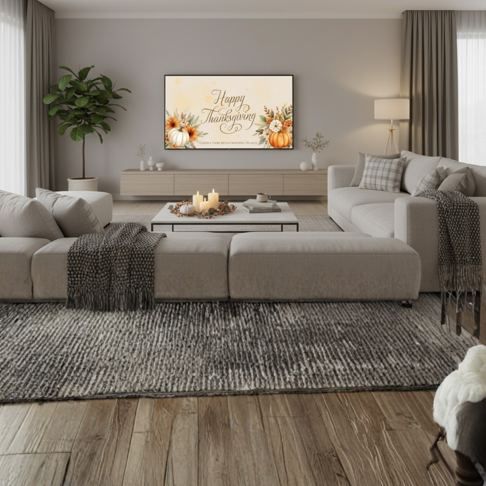 Whether you’re hosting an intimate family dinner or a festive Friendsgiving feast, this digital banner adds a cozy, upscale touch to your holiday décor — no printing required! Simply edit (optional) and display on any smart TV, monitor, or projector for an effortless seasonal centerpiece.